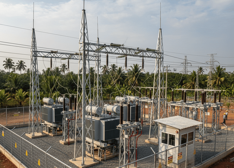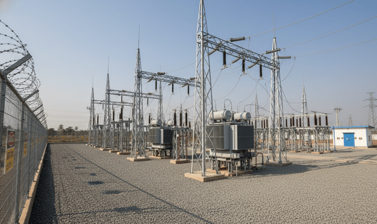 132KV Extra High Voltage (EHV) Transmission: Engineering and construction of a 132KV transmission line and associated switchyard to bring primary grid power to the project site.