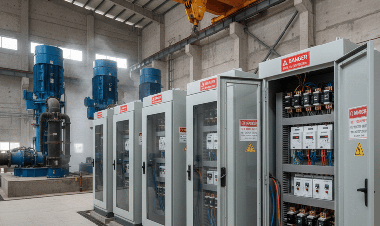 We delivered the full Supply, Installation, Testing, Commsioning of 6.6KV HT Panels (Main, Starting, APFC, and VFD) at the Kilgari Pump House for Water Resource Department, Neemuch. The project featured advanced SCADA Automation integrating PLC panels, Web-View software, and precision sensors for vibration, temperature, and flow monitoring.